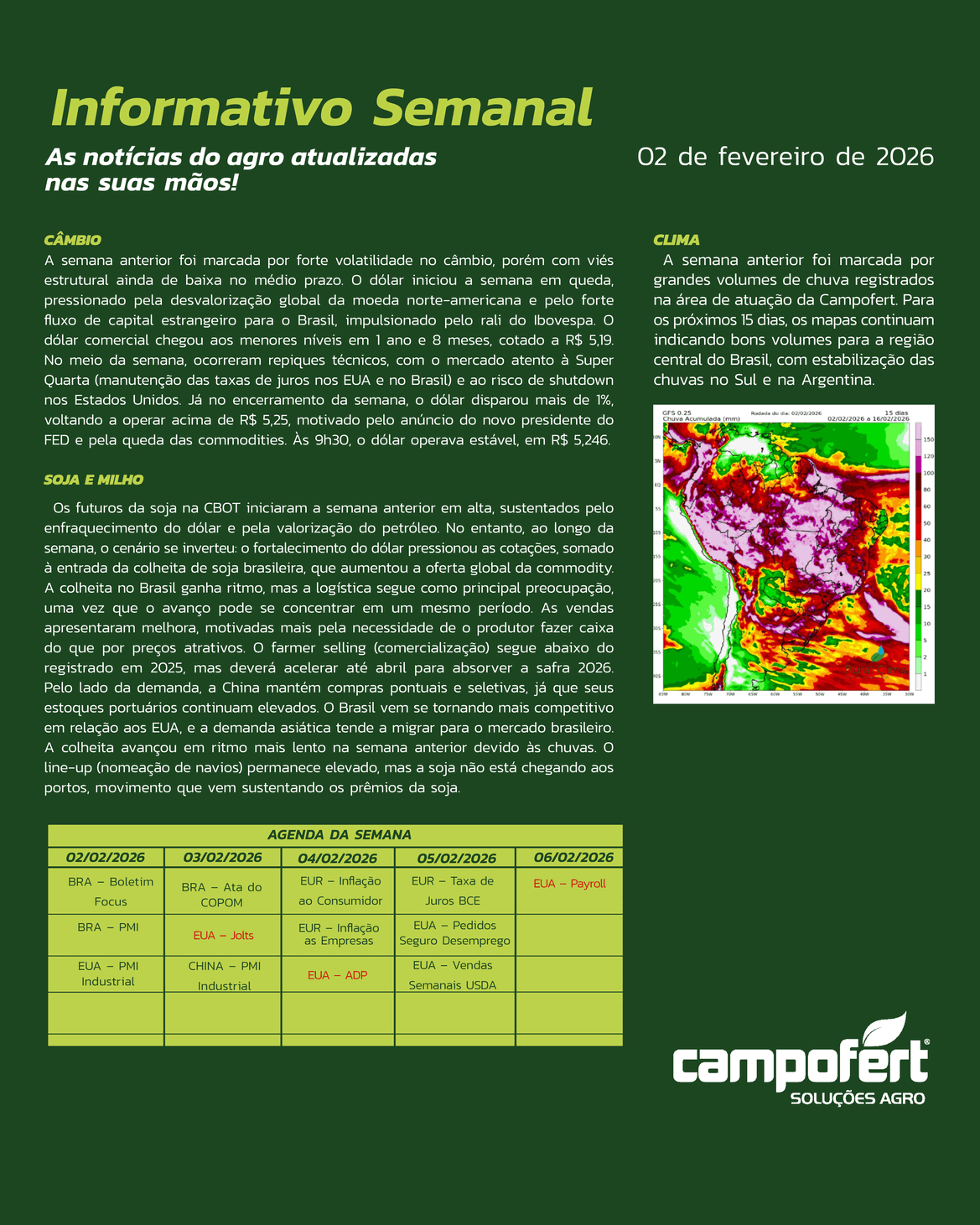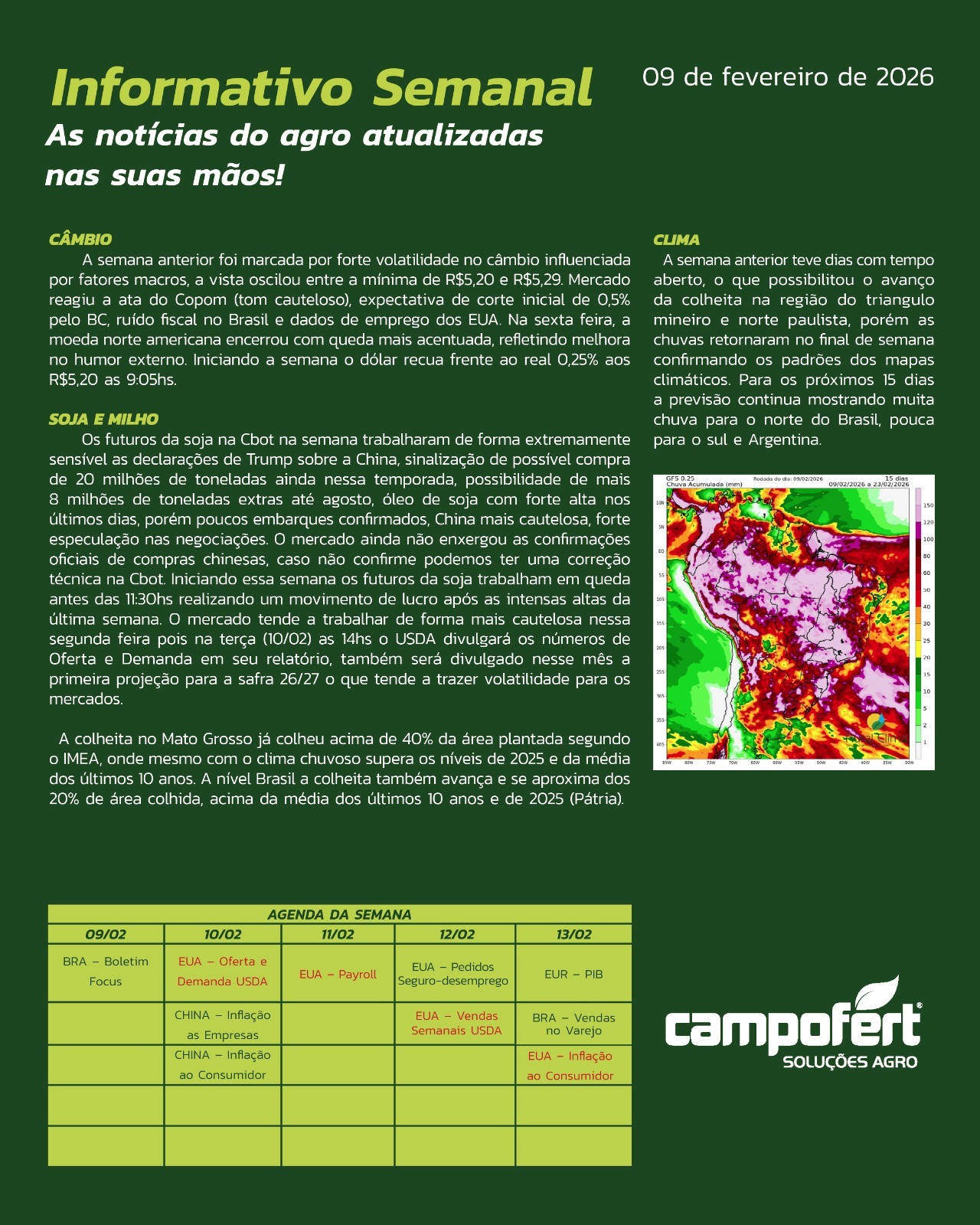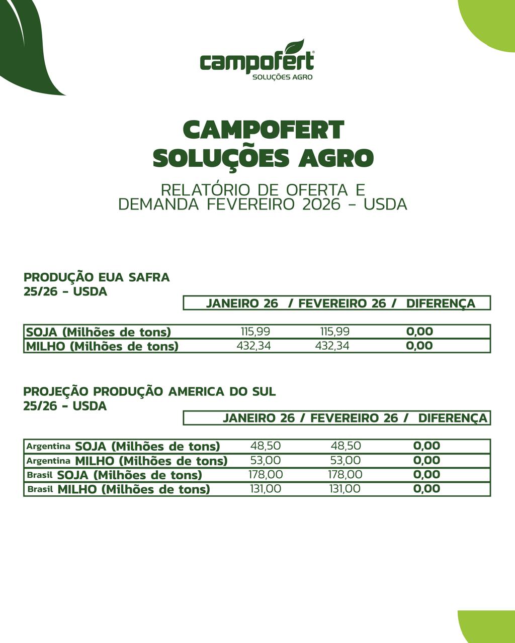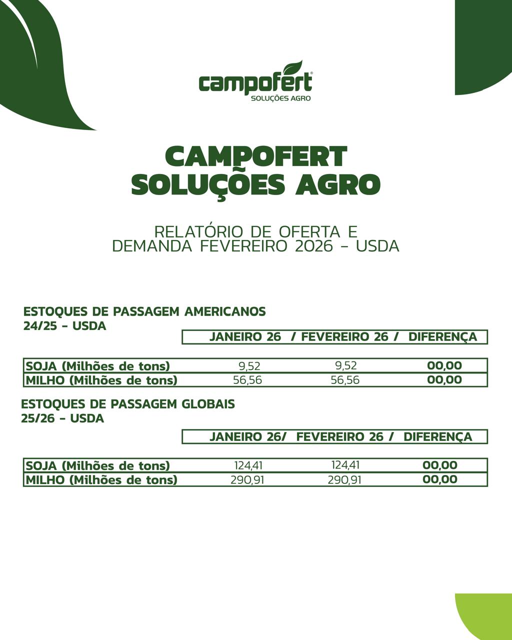 Informativo Informativo da Semana 16 de Março de 2026 Informativos Anteriores 09 de Março de 2026 02 de Março de 2026 23 de Fevereiro de 2026 09 de Fevereiro de 2026 02 de Fevereiro de 2026 Relatório de Oferta e Demanda USDA – Fevereiro/2026