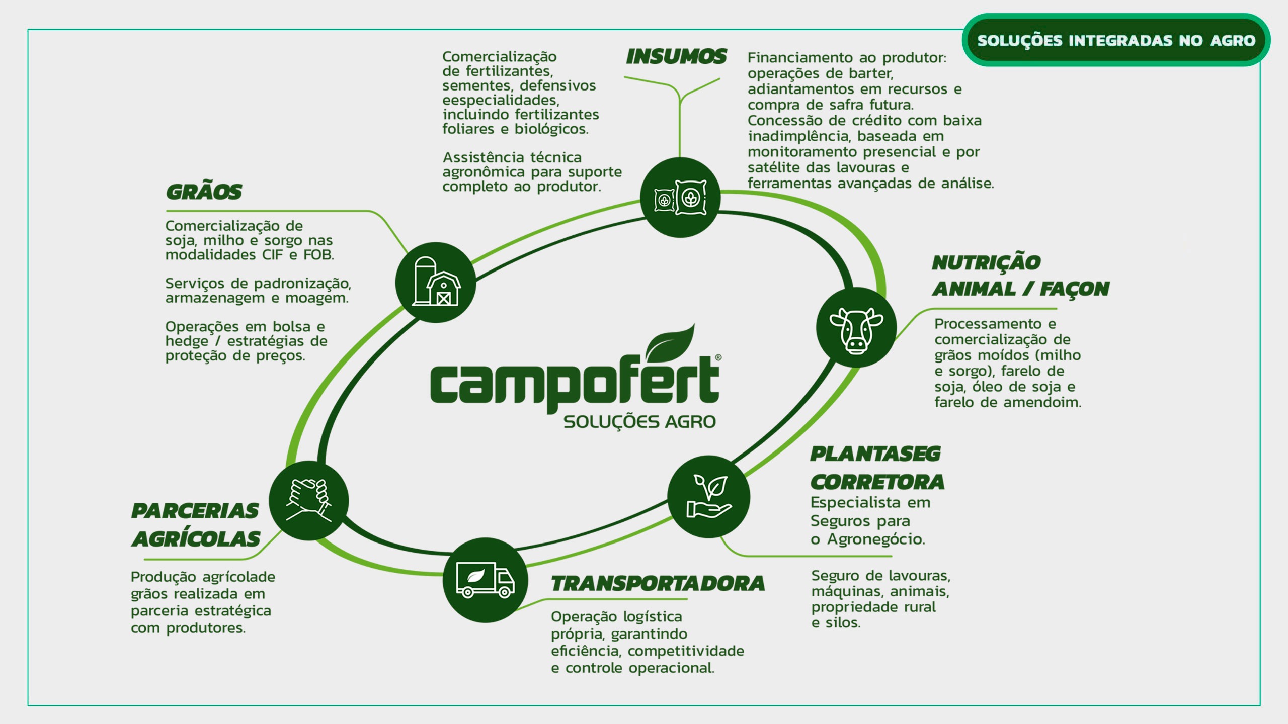 A vida de quem produz alimentos no Brasil nunca foi fácil, mas com a Campofert pode ser mais tranquila. Temos todas as soluções e recursos que você precisa para tocar e vender sua safra com orientação, suporte e segurança.